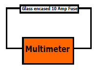 on Ohms rangeAttach a 10 Amp fuse across a battery charger